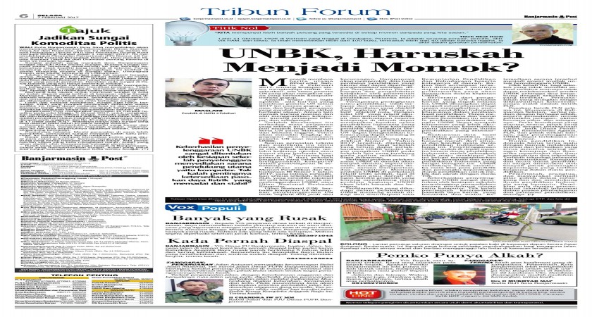 Demikian pula dalam beberapa judul artikel, kita dibolehkan juga menggunakan kata seru, tanda tanya, tanda kurung, dan sebagainya yang memberikan nuansa berbeda dari kebiasaan judul yang umum. Berikut ini penulis berikan contoh judul artikel yang telah terbit pada koran lokal Kalimantan Selatan, antara lain : (1). UN yang (Selalu) Fenomenal (koran Banjarmasin Post, 16 Mei 2015), (2) Ketika PR (Masih) Menjadi Alasan ( koran Radar Banjarmasin, 4 Desember 2016), (3) UNBK dan Problematikanya (koran Radar Banjarmasin, 17 Januari 2017), (4) UN, MBS, dan Mutu Sekolah (koran Radar Banjarmasin, 5 April 2017), dan (5) Merevitalisasi (Kembali) Pendidikan Karakter di Era Digital (koran Radar Banjarmasin, 17 Mei 2017).