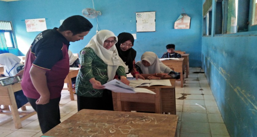 Pengawas semuanya sudah siap untuk masuk ke ruang UN, dan pukul 10.10 WIT dibunyikan untuk menandakan pengawas dan peserta masuk ke ruang UN masing-masing. Petugas monitoring dan pengambil/pembawa LJK dari Dinas Pendidikan dan Kebudayaan Tanah Laut yang akan bertugas di SMPN 4 Pelaihari hari menurut jadwalnya hanya satu orang, tetapi menjelang masuk waktu pengerjaan soal UNU petugas yang bersangkutan belum juga hadir, sedangkan petugas pengamanan dari Polsek Pelaihari sudah hadir seperti hari sebelumnya.