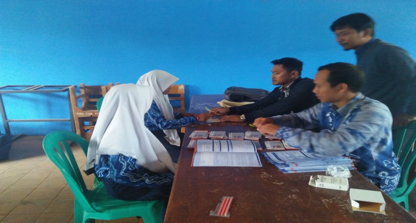 Petugas Bank BRI Unit Gagas Pelaihari datang sekitar pukul 09.45 WIT, dan kemudian diantarkan ke ruangan tempat penyerahan dana PIP oleh Bapak Ngadina, Koordinator TU SMPN 4 Pelaihari, dan dibantu oleh Bapak Saiful Bahri, S.Pd , Wakil Kepala Sekolah, dan Bapak Ismail. Sementara itu, siswa penerima dana PIP yang sudah dihubungi sebelumnya sudah keluar dari ruang kegiatan ulangan umum atau UKK semester 2 Tahun Pelajaran 2017/2018.